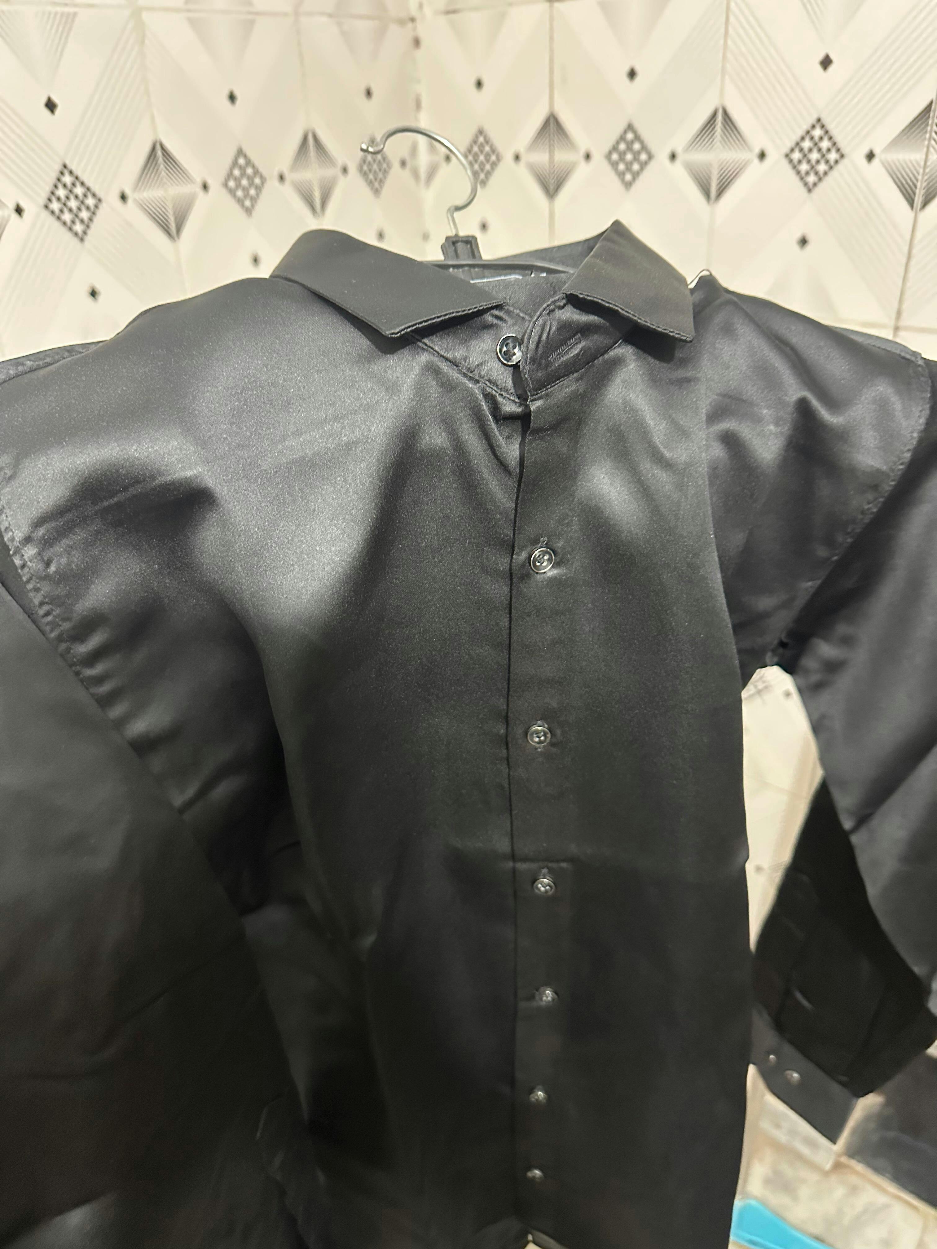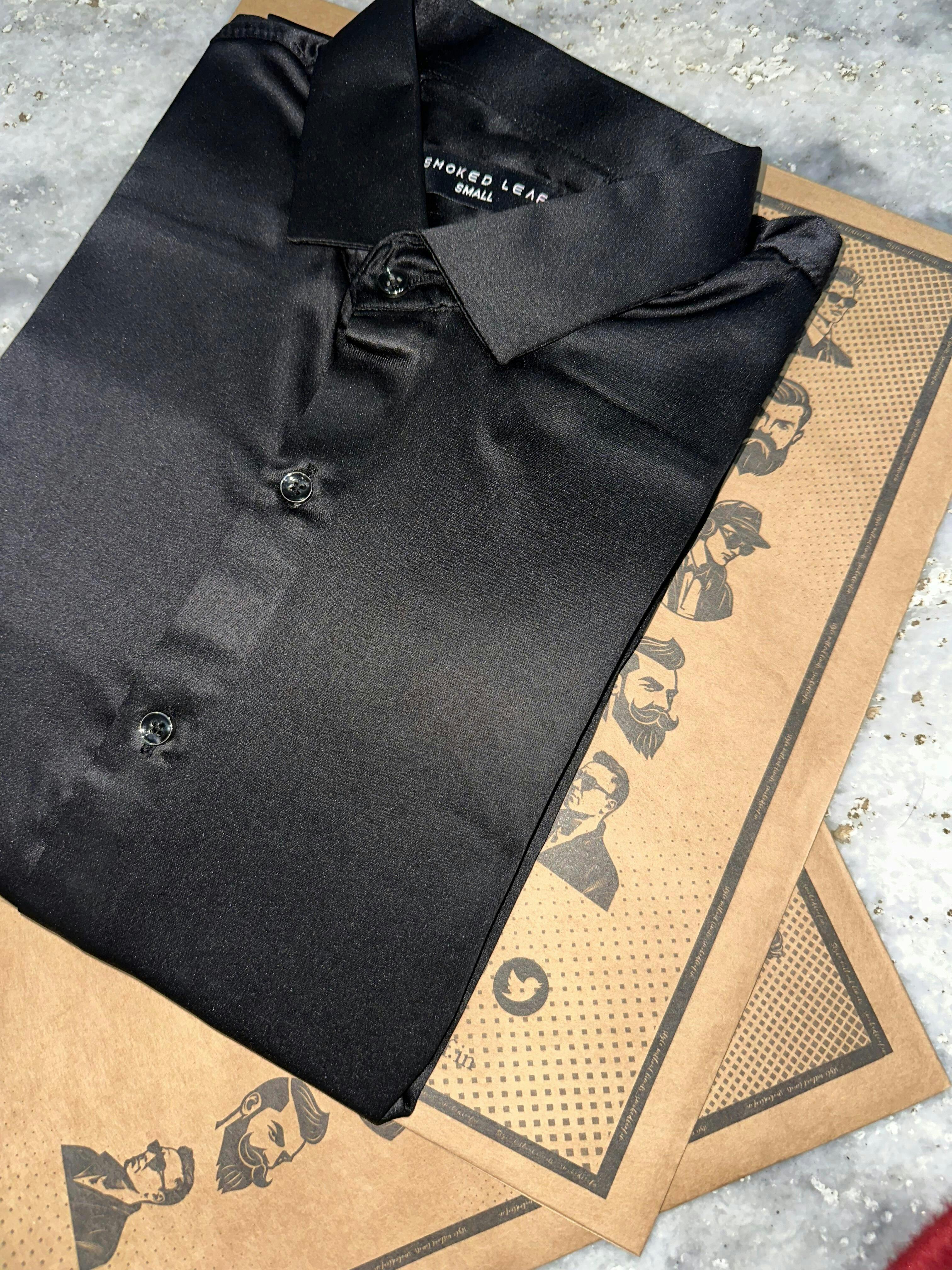 Elevate your wardrobe with this sleek and stylish men’s satin shirt in black color. Crafted from premium satin fabric, it offers a smooth, luxurious feel with a subtle sheen that catches the light just right.