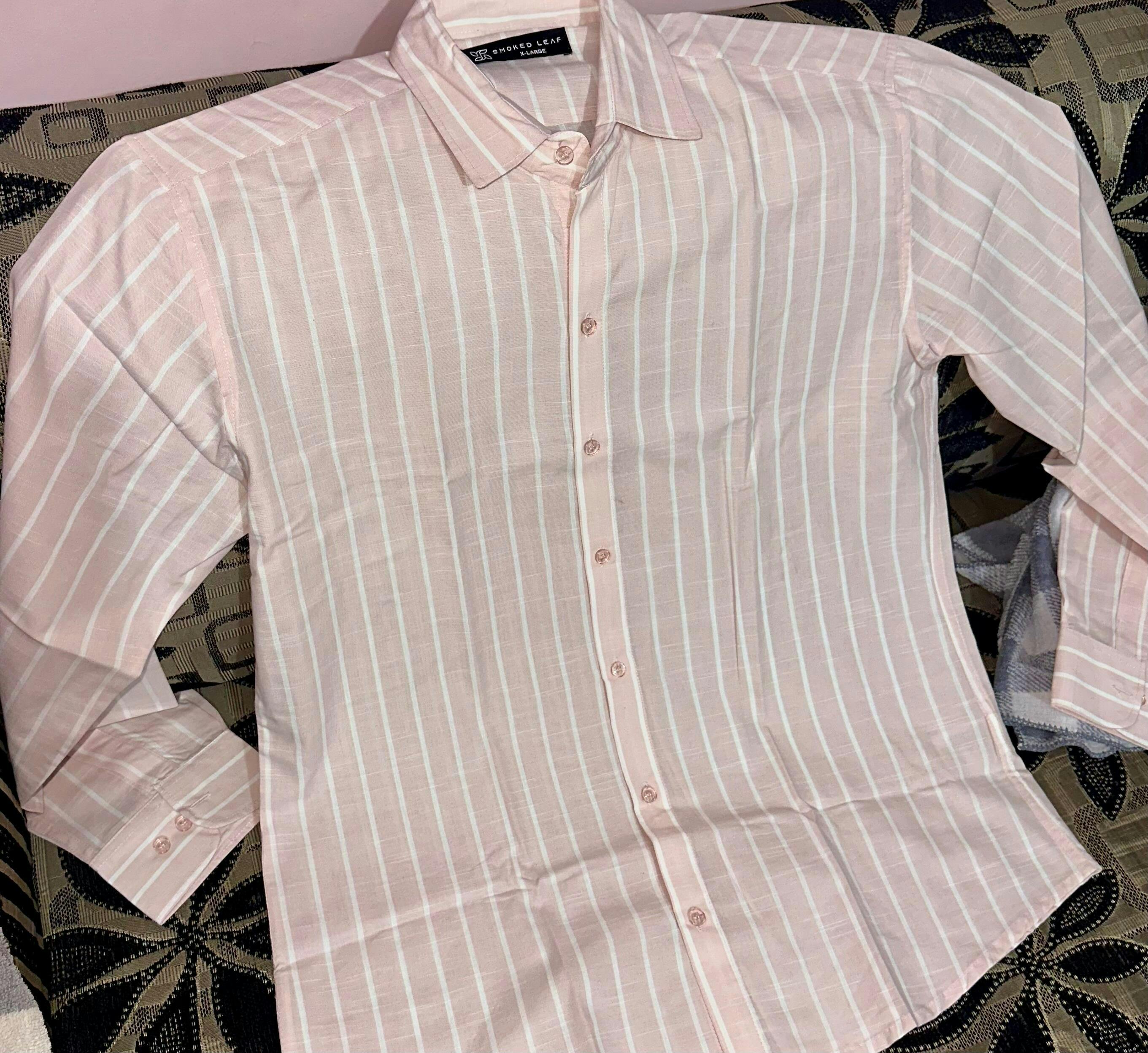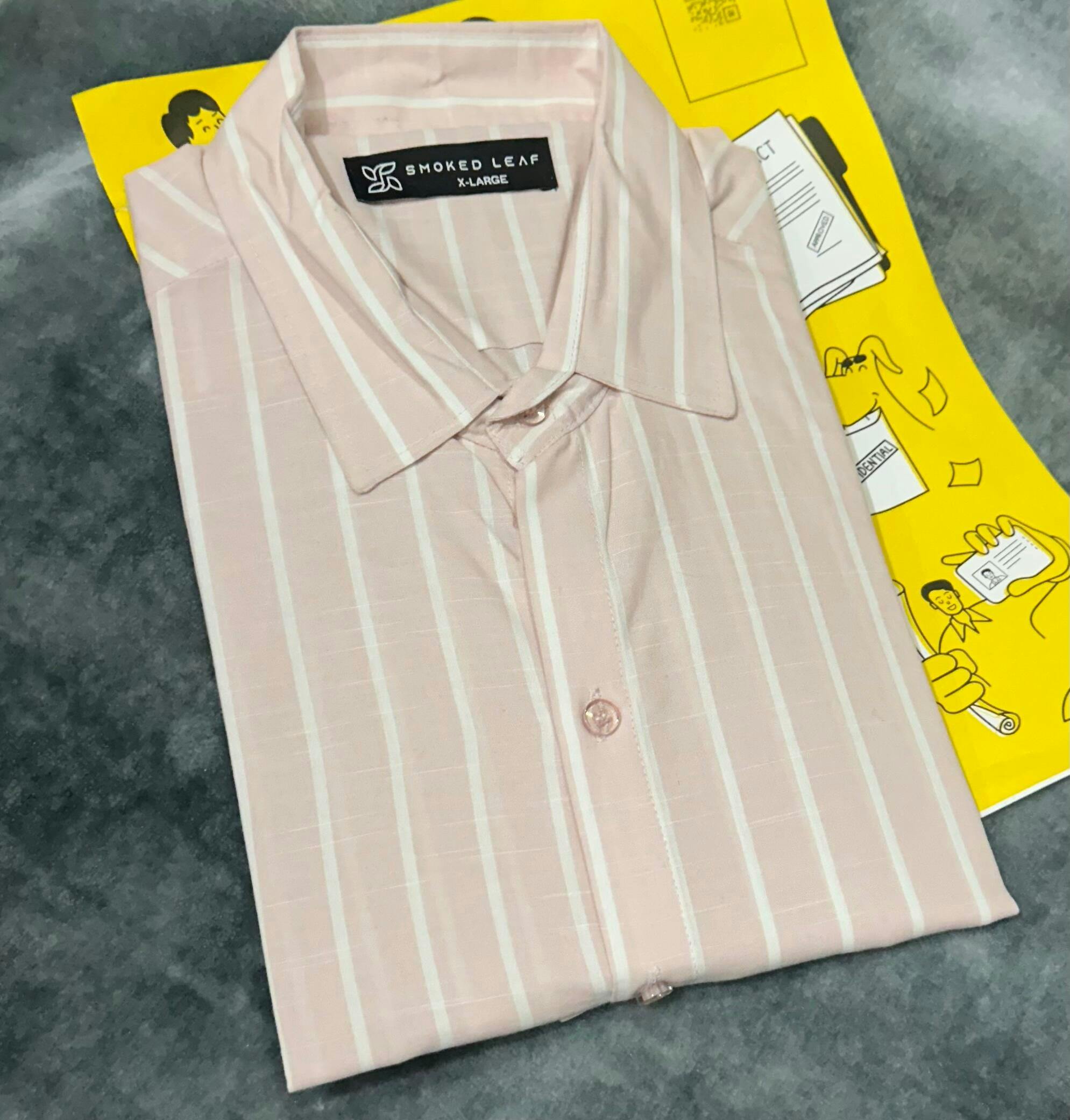 Stay cool and stylish with this light pink striped shirt, crafted from premium soft cotton. Designed to feel super light on the skin while being strong and durable, it’s the perfect blend of comfort and class. The full sleeves and classic fit make it ideal for layering or wearing solo. A wardrobe essential for effortless everyday looks.